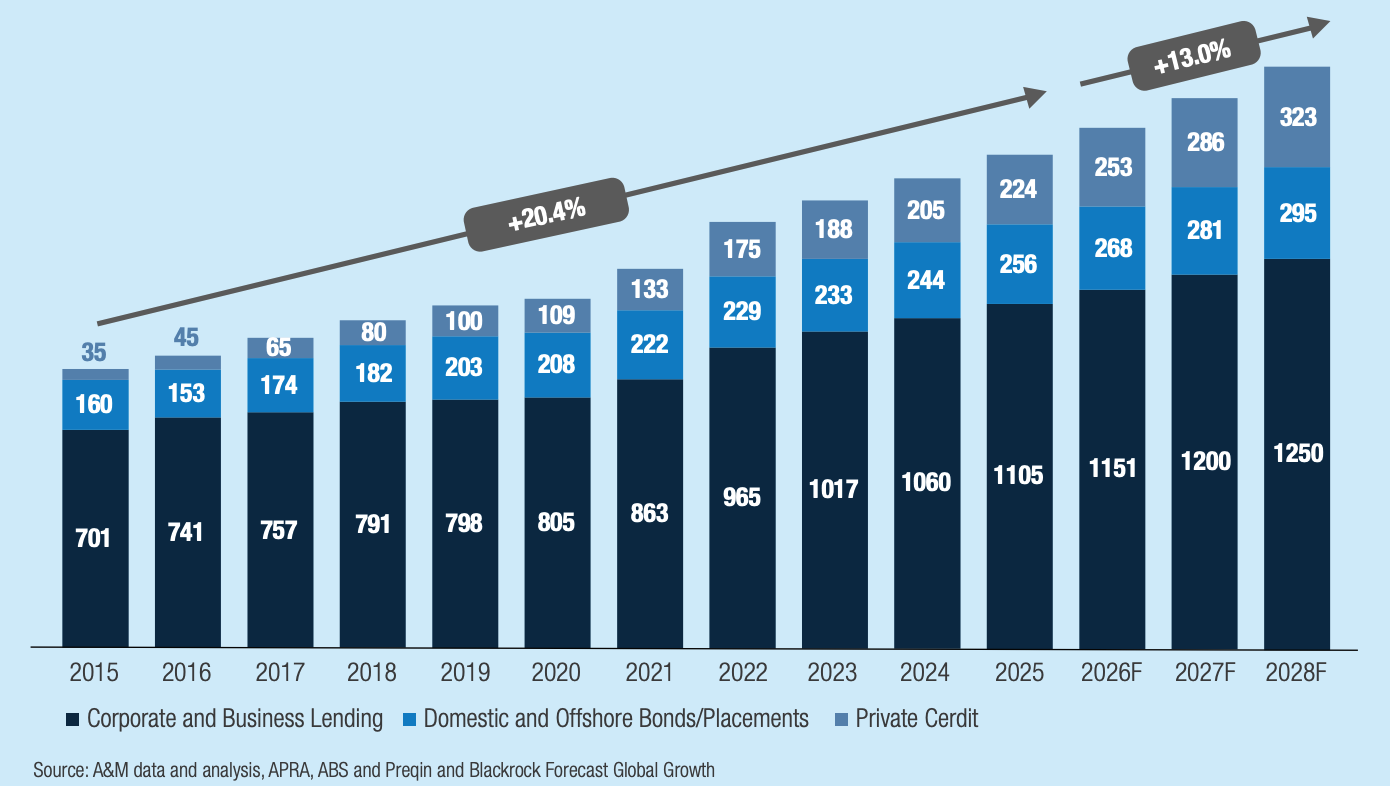 A defining feature of Asia-Pacific private credit is its SME and mid-market focus. In Australia, as part of long-term structural shift, banks continue to retreat from smaller and mid-sized corporate lending due to higher capital and operating costs which make it more efficient and profitable for them to offer standardised products, not bespoke solutions.