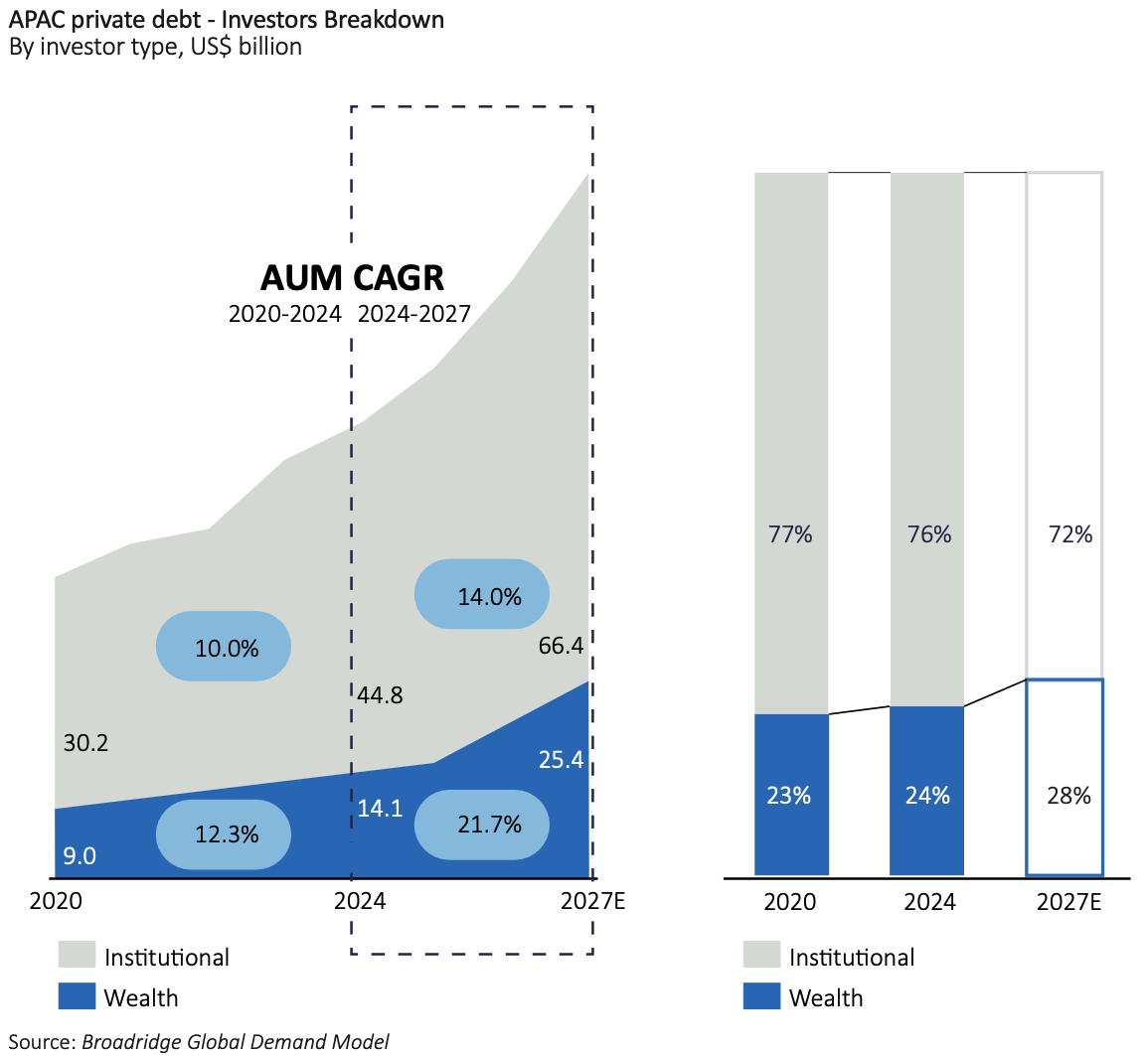 Across Asia-Pacific, institutional allocators and private wealth investors are fuelling new inflows into private credit. The AIMA report forecasts that wealth investors will represent 28% of total AUM by 2027, up from 23% in 2020 underscoring the asset class’s evolution from institutional niche to mainstream investment option.