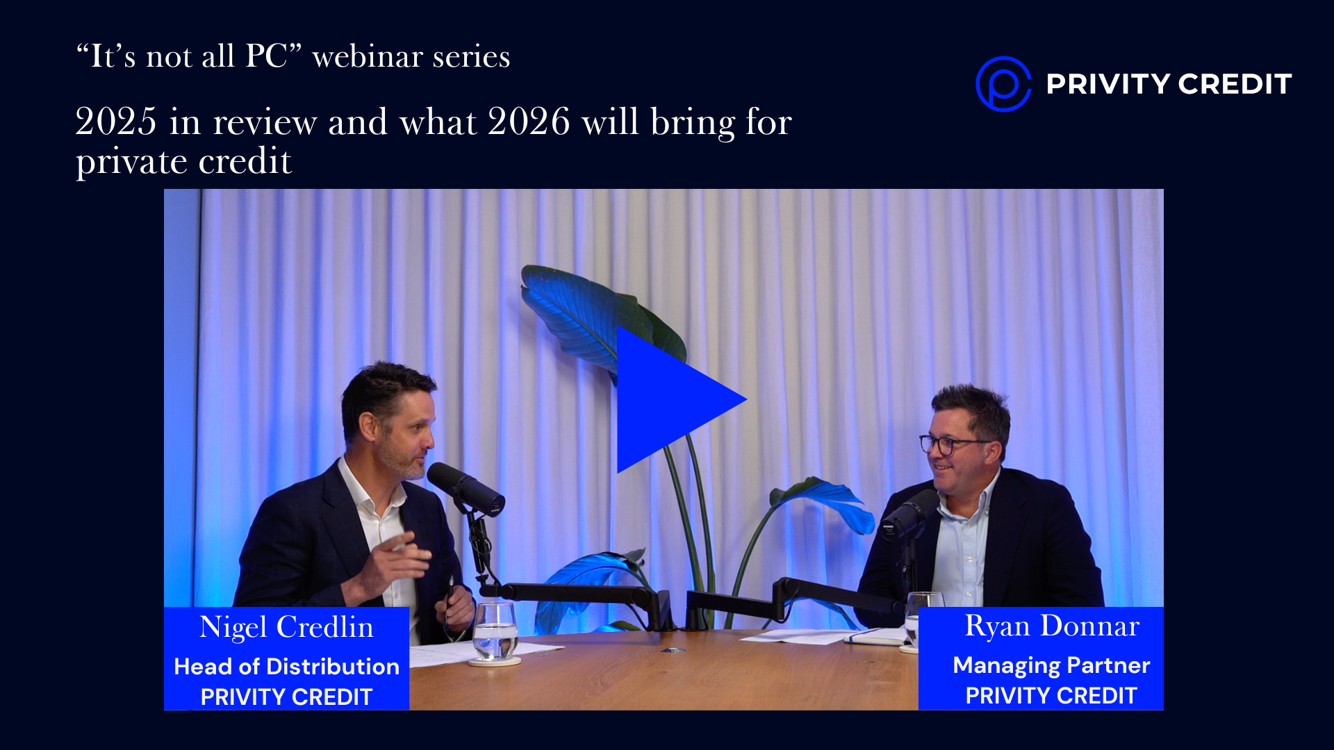 Unpacking a real practitioner’s experience in this exclusive on-demand webinar, Privity Credit’s Managing Partner & Head of Originations, Ryan Donnar, joins Head of Distribution Nigel Credlin to unpack the forces reshaping portfolio construction and credit markets heading into 2026.